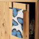 Design motif sans couture avec papillons morpho bleu sur hydrangea fleurs en lin arrière - plan.