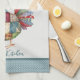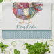 Une mignonne petite serviette de cuisine à thème poulet personnalisée avec votre nom. Hen est créé dans un design coloré à motifs de patchwork avec un petit arrière - plan de pois en bleu. Voir d'autres éléments de décoration de cuisine dans cette même collection de design.