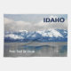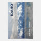 En regardant à l'est de Sandpoint, traversez le lac Pend Oreille (étang oh-ray) par un jour d'hiver; montagnes enneigées au loin. La glace s'est formée sur le rivage et s'étend à une partie du lac. Le blues et le gris sont les couleurs dominantes. Le texte personnalisable "IDAHO" apparaît également ; et il y a un autre endroit pour ajouter du texte.