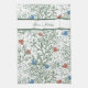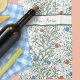 Motif botanique des Arts et de l'Artisanat dans la sauge, rouge et bleu inspiré par William Morris et utilisant de nombreux éléments qu'il utilisait comme des pavots. Votre nom en vert au sommet.