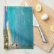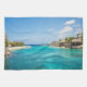 Serviette de cuisine avec une belle photo d'un complexe balnéaire tropical. Jolie plage de sable blanc et d'eau bleue avec des paillotes, ce qui lui donne une ambiance insulaire tranquille.