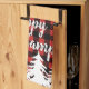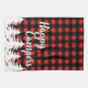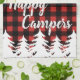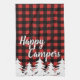Plaid rustique de contrôle de buffle en serviette de cuisine rouge et noire comportant l'expression "profondément satisfaits" et arbres blancs.