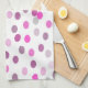 Linge De Cuisine Pois rose classique sur blanc