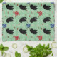 Une silhouette Poodle avec un éparpillement d'os et de pistes de pattes. Cette conception est destinée à la tuile de manière transparente.