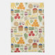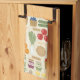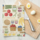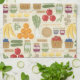 Fruits, légumes, cornichons, herbes et plus encore sur une serviette de cuisine.