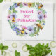 Une couronne fleurie, avec des fleurs d'aquarelle, des feuilles et des baies, et une variété de pollinisateurs, dont les abeilles