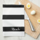 Une belle serviette de cuisine moderne, cet article comporte une belle conception rayée noire et blanche. Avec un endroit pour insérer votre nom dans le coin droit inférieur, personnalisez le vôtre aujourd'hui !