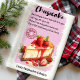 Ajoutez une touche sucrée à votre cuisine avec cette serviette personnalisée Cheesecake Recipe. Dotée d'une délicieuse recette de cheesecake, cette serviette est parfaite pour la décoration et l'utilisation pratique. Customisez-le avec votre nom ou un message spécial, ce qui en fait un cadeau réfléchi pour les amateurs de cheesecake et les boulangers maison.