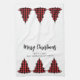 Ce design comprend un joyeux Noël, une serviette de cuisine en plastique de buffle rouge, avec un arbre boisé, hiver rustique, cuisine de vacances, gardienne d'auberges, mignon caprice, motif simple, festif amusant, avec typographie de script de calligraphie.