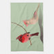 Voici une serviette de cuisine avec un cardinal mâle et femelle. Ce sont les oiseaux que vous voyez en hiver autour de Noël. Les couleurs sont rouge et vert, couleurs de Noël. Décor de Noël pour votre cuisine.