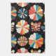 Linge De Cuisine Retro Black Rainbow geometric Flowers Pattern