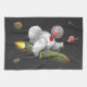 Une serviette de cuisine de Thanksgiving amusante et douce où la Turquie s'est échappée de Thanksgiving et voyage à travers l'univers avec l'aide de sa fusée.