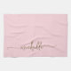 Serviette de cuisine rose poudré personnalisée avec monogramme élégant moderne et chic, nom personnalisé en écriture script. Caractérisée par un nom personnalisé dans une police de caractères à queue avec des fioritures écrite à la main (ou typographie) en or sur fond rose poudré ou rose pastel. Celles-ci sont faciles à personnaliser. Cadeau de pendaison de crémaillère féminin et élégant, fête des mères, également pour un anniversaire, un mariage, une douche de mariée et c'est pour la fille qui aime les choses féminines minimalistes uniques.