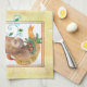 La serviette de cuisine lunatique comporte la chèvre illustrée avec la bannière de Noël sur le cou. L'illustration de ferme de Noël est cadre avec le houx de vacances. Perfectionnez pour n'importe quelle cuisine de pays. Portrait d'animal de ferme par le judithchengart