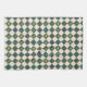 A simple pattern of green checks and mushrooms. Hand drawn.