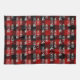 Police Joyeux Noël blanc avec bonhomme de neige et pin avec casquette sur plaid de buffle rouge et noir.