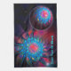 Une image fractale très colorée, tourbillonnante apparaît deux fois. Une fois superposée sur un arrière - plan spatial étoilé, une deuxième fois sur une petite sphère entourée d'une aura brillante. Peut-être une sonde lancée à partir d'un vaisseau mère, ou un oeuf cosmique. Ajoutez votre propre texte.
