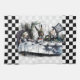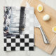 16" x 24" serviette de cuisine avec une Alice vintage dans l'image du pays des merveilles d'Alice au thé du chapelier fou avec les lièvres de mars, et le loir sur un damier gris et blanc avec les frontières noires et blanches larges de damier. Serviette assortie de tissu See, serviette de papier de cocktail, set de table de tissu, set de table de papier et dessous de verre. Voyez la collection entière de serviette de cuisine du pays des merveilles dans la section de toiles de FOOD/BEV |.