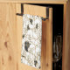 un troupeau énorme des moutons noirs et blancs très heureux de bande dessinée couvrent cette serviette de cuisine.