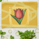Illustration d'une tulipe à ressort rouge sur un arrière - plan abstrait doré et jaune.