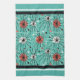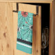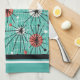 Serviette de cuisine de 16" x 24" avec une image des années 1950 d'orbes blanches et rouges avec des sacs étoilés noirs sur du turquoise. Bordures rayées noir et blanc. Voir la serviette en tissu assortie, la serviette en papier et les dessous de verre. Voir toute la collection de serviettes de cuisine Nifty les années 50 dans le FOOD/BEV| Section Linens.