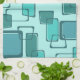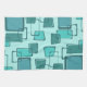Un élégant motif d'art abstrait de l'ère atomique des années 1950 avec des carrés asymétriques en turquoise et turquoise.