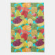 Jolie serviette de cuisine aux fruits sur un arrière - plan turquoise !
