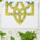 Texture de l'emblème national ukrainien trident tryzub dans les couleurs du drapeau ukrainien et le motif du cercle de course
