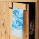Conception nautique fraîche de bateau à voile dans les vagues en mer. Serviette de thé préférée pour n'importe qui qui aiment naviguer. Turquoise et couleurs bleues. Grande addition à tout office !