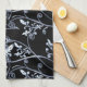 Linge De Cuisine Vignes argentées bleues de fleur sur le noir