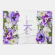Deux bordures élégantes de violet, de couleur lavande, de fleurs violettes et blanches, des panneaux sur un élégant arrière - plan blanc. Personnalisez et ajoutez votre nom et la lettre monogramme, initiale. Lettres violettes. Le nom est écrit avec un script de style moderne écrit à la main avec des swashes. Pour que les swashes ne suppriment que le nom de l'échantillon, laissez les espaces ou émoticônes devant et après le nom.