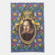 Le barde - la conception originale sur cette serviette de cuisine est un portrait de William Shakespeare auteur. Le portrait est dans un cadre ovale fleuri d'or avec des rubans et une couronne sur le dessus. Le papier peint bleu d'arrière - plan est décoré des châteaux, des couronnes des rois et des fleurs jaunes et rouges, apportant pour s'occuper du romance, de la tragédie et de la comédie de ses jeux et poésie.