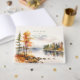 Donnez le ton à votre mariage de automne avec ce romantique livre d'hôtes, avec un lac serein et une scène de montagne superposés sur des imprimés de lin rustique. Idéal pour un mariage extérieur douillet, des événements d'automne ou des mariages de destination au bord de l'eau. Personnalisable avec vos noms, dates et emplacement - partie de notre collection de Mariages de automne pour une suite de papeterie coordonnée.