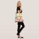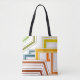 Diese Tasche hat einen Deko-Design von Linien in grün, gelb, braun, orange und blau.