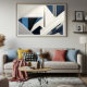 Abstrakte Kunst, die geometrische Formen, Lichtkontraste und coole Farbtöne mit einem goldenen Hauch von Gold kombiniert. Ein ausgeklügeltes Stück, das Bewegung und Balance vermittelt, perfekt um jedem Raum Modernität und Stil hinzuzufügen.