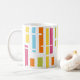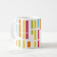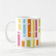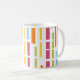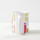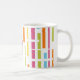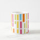 Diese Tasse hat ein modernes Design von bunten vertikalen Linien mit weißen horizontalen Linien.