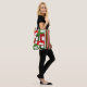 Diese Tasche hat ein modernes Weihnachtsdesign von Linien und Rechtecken in Retrotönen von Rot und Grün.