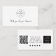 Eine moderne minimalistische Karte, die in Ihre Kunden ausrutschen können, die Verpackung kaufen, um Ihnen zu sagen danke und für eine Überprüfung fragen. Beruflich, modern, minimalistisch und perfekt für jeden Geschmack. Wählen Sie aus, wo Ihr Kunde Ihr Produkt prüfen möchte, indem Sie das Logo für den Review in den sozialen Medien hochladen und den Link für den QR Code anpassen.