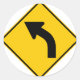 Internationale Straße und Autobahnwarnschild beraten von einer nähern links Kurve in der Straße.