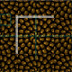 Auf einem schwarzen Hintergrund ist ein Löwe in einem wiederholten runden Muster abgebildet.