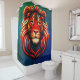 Dieser Duschvorhang hat ein Löwendesign darauf.