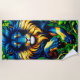 Dieses Strandtuch hat Löwenkünstler darauf.