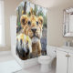 Dieser Duschvorhang hat einen niedlichen Löwenkuchen darauf.
