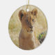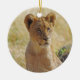Ferkel Christmas Tree ornament showing a close-up foto of a lion cub sitting in the tall yellow grass. This was taken in the Savuti Camp area of Okavango Delta, Botswana, July 2012. Great ornament for your holiday tree...or for a gift