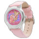 Kinderuhr aus Edelstahl mit rosa Lederarmband