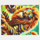 Diese Fleecedecke hat ein Löwendesign darauf.