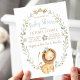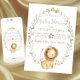 Invitations de douche bébé Lion avec adorable prince lion aquarelle sur un mignon arrière - plan feuille jungle. Cette invitation au baby shower de lions doux est facilement customisée pour votre événement en ajoutant simplement vos détails. Vous pouvez également modifier la couleur de l'arrière - plan à l'arrière.