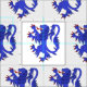 Dieses Design von Richard H. Fay zeigt einen heraldischen Löwenzahn, einen blauen Löwen, der im Profil auf seinen Hinterbeinen dargestellt ist und bereit ist, alle Angreifer abzuwehren.