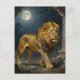 A lion themed postcard to say hi and keep in touch with friends and family while away. On the front is an illustration of a majestic lion walking through ancient dunes with the moonlight lighting up his golden fur.