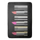 Ein lustiges Muster von bunten Lippensticks in Chromoschläuchen. Sehr mädchenhaft und modern. Sieht aus wie eine Lippenstift-City-Skyline.
